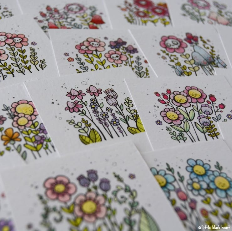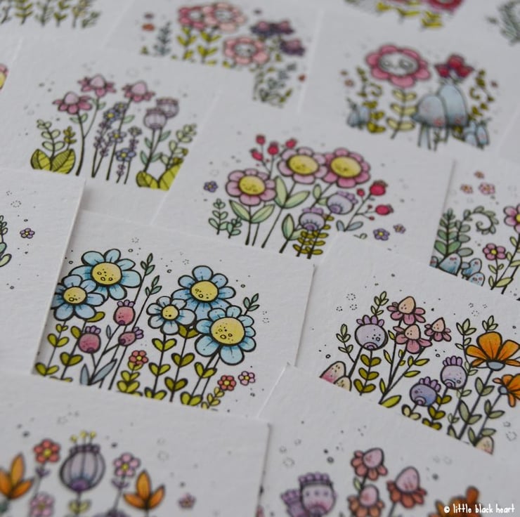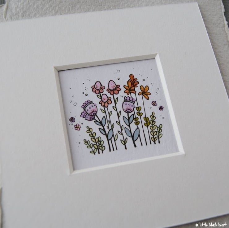 it is hand drawn and coloured with watercolour paints, pens and inks, on a lovely textured watercolour paper. (300gsm)