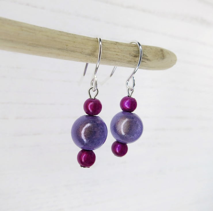 The photo of the earrings in my hand is just to give an idea of size, this listing is for the Lilac and Hot Pink mix.