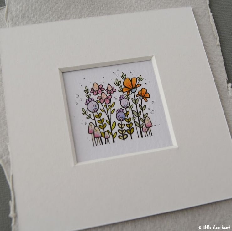 it is hand drawn and coloured with watercolour paints, pens and inks, on a lovely textured watercolour paper. (300gsm)
