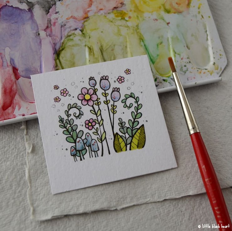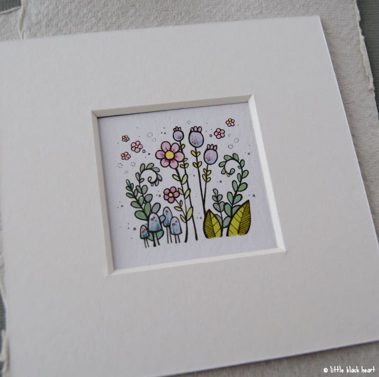 it is hand drawn and coloured with watercolour paints, pens and inks, on a lovely textured watercolour paper. (300gsm)