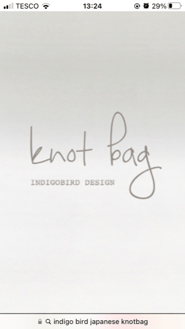 This small japanese knot bag has asymmetrical handles and a contrasting plain orange lining.