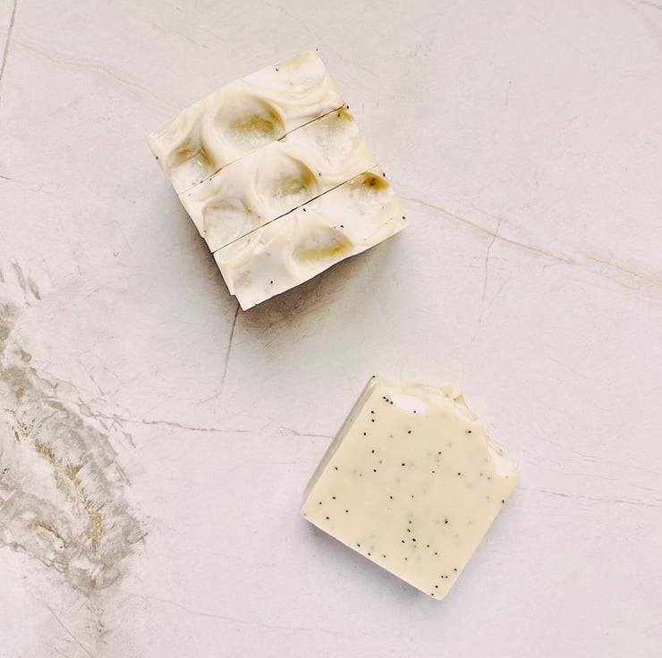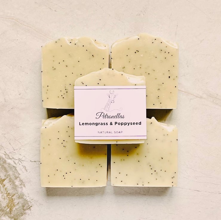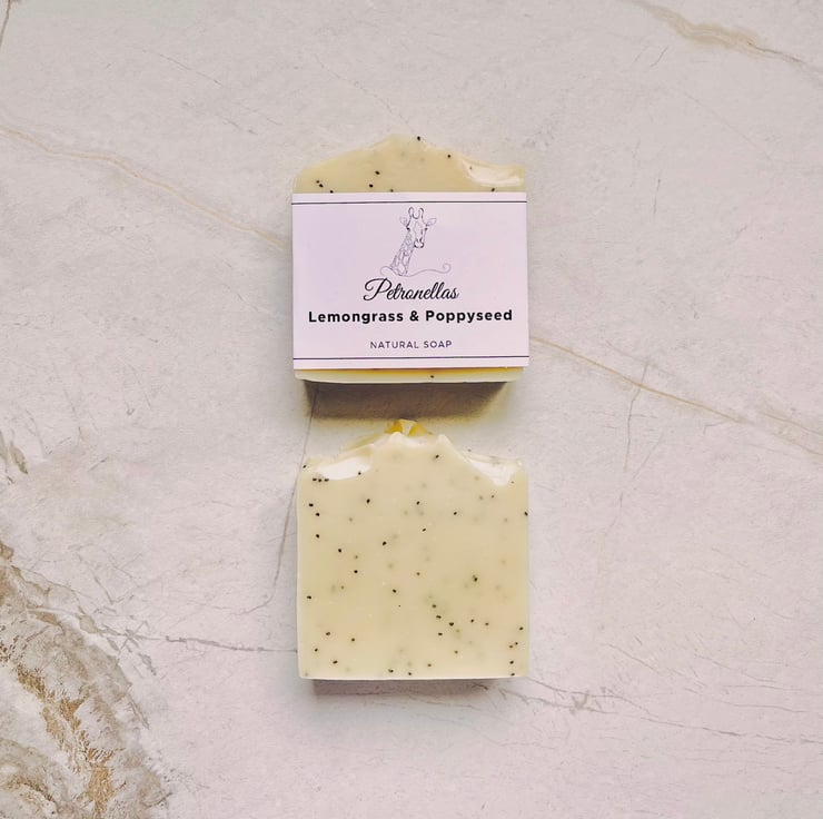 Lemongrass and Poppyseed Handmade Natural Soap: an uplifting lemony scent with added poppyseeds to create a mildly exfoliating soap that is suitable for all skin types.