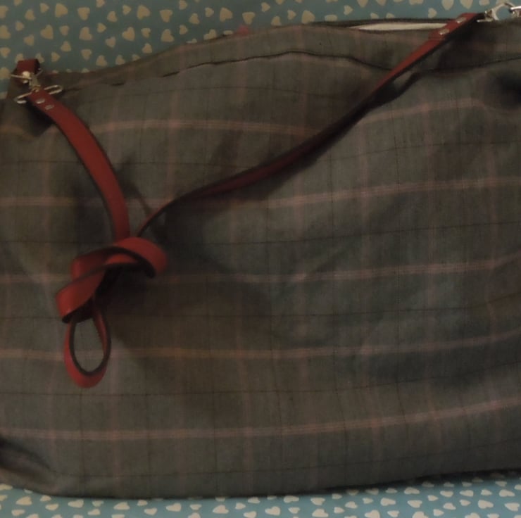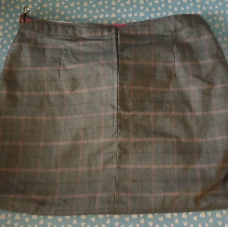 Lovely grey and pink check bag made from a small skirt, upcycled with a magnetic closure and internal pocket.