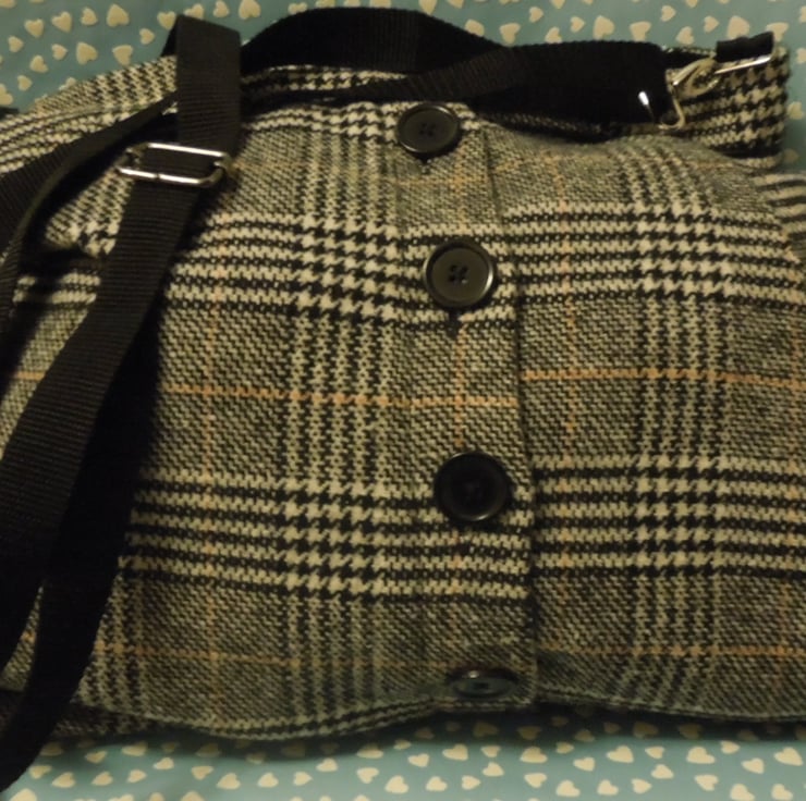 Cute Black, white, red and pink check 'SKIRT' bag with vegan leather strap.