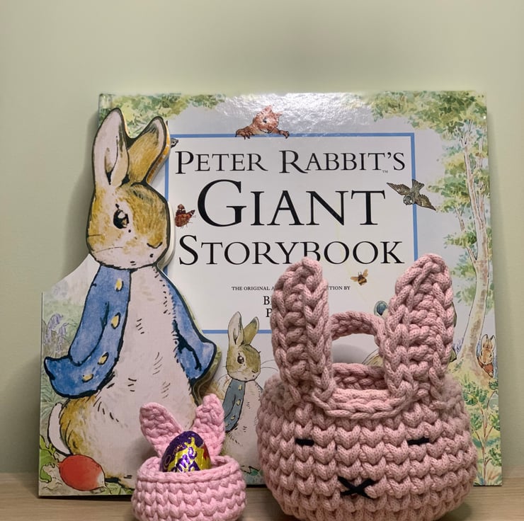 Cutest thing - bunny Easter basket for your little ones. To fill it with sweets and cookies. Or, maybe, like my daughter to use as a purse. Or just store bits and bobs there - little princess stuff.