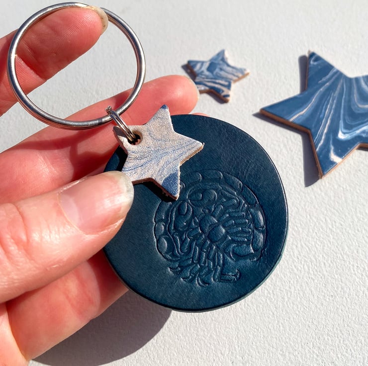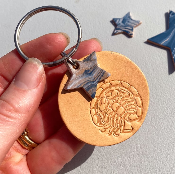 A beautiful leather keyring with a Scorpio Star Sign beautifully stamped in Italian veg tanned leather. Handmade to order.