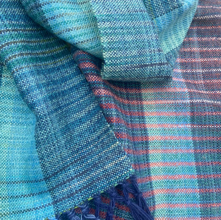 Hand woven on our medium loom - a 4 shaft Harris Counter March loom named Marilyn.