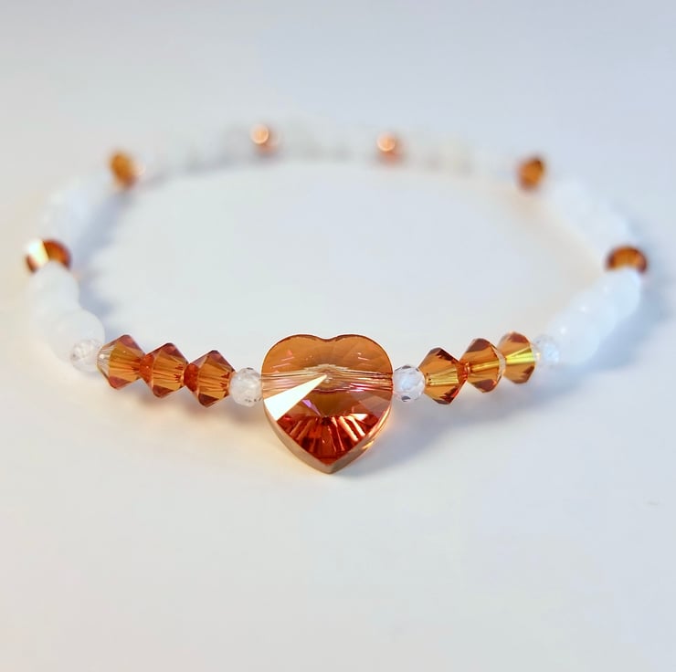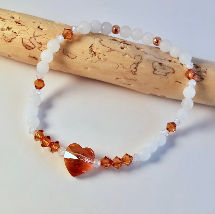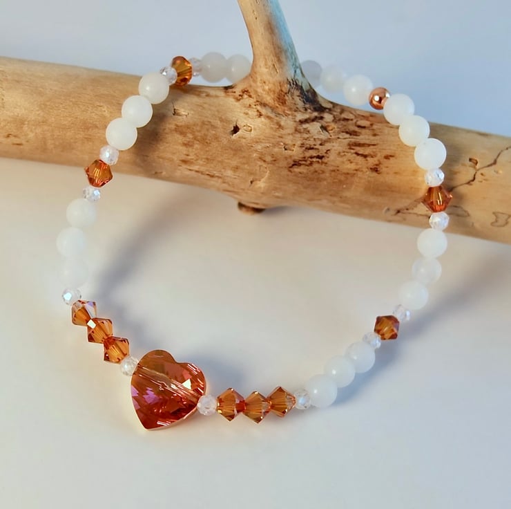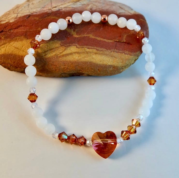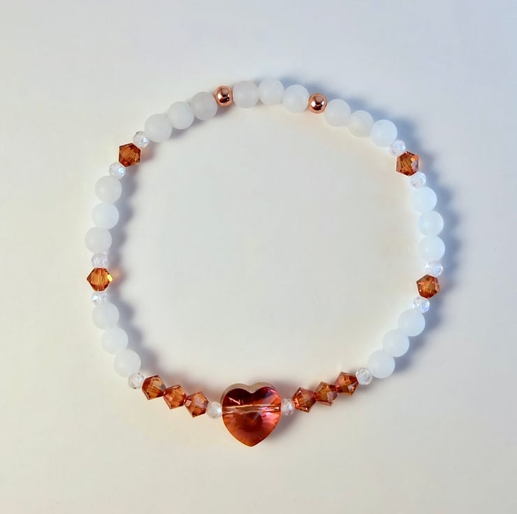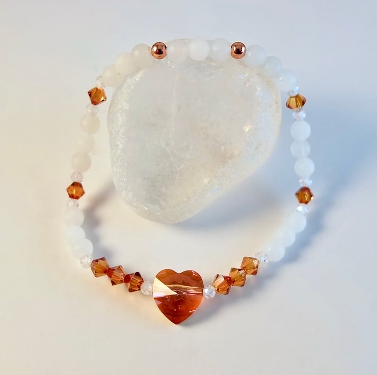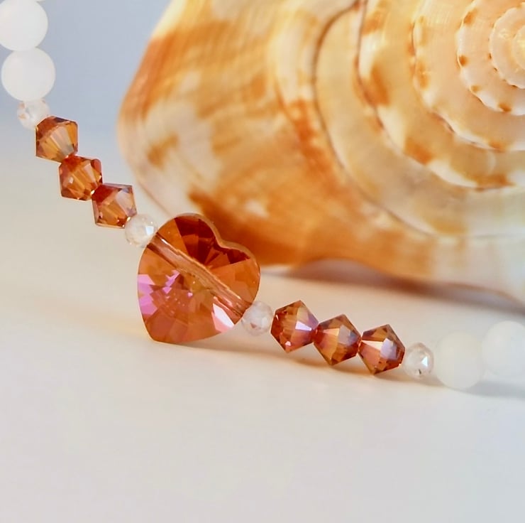 This dainty bracelet features a 10mm Swarovski 'Crystal Copper' heart as a centrepiece.
