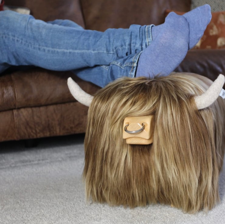 Our Highland Cow Footstool is inspired by our home in the gorgeous Scottish Highlands! Our wee workshop is surrounded by rolling green fields and farms... it is easy to be inspired by the beauty around us, but it is our love for crafting that pushes us to make these little cuties. We aim to make the cutest, comfiest and best quality footstools to add some charm to your home, the little characters they have is just the magic that comes with it!