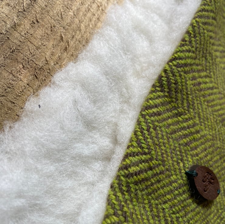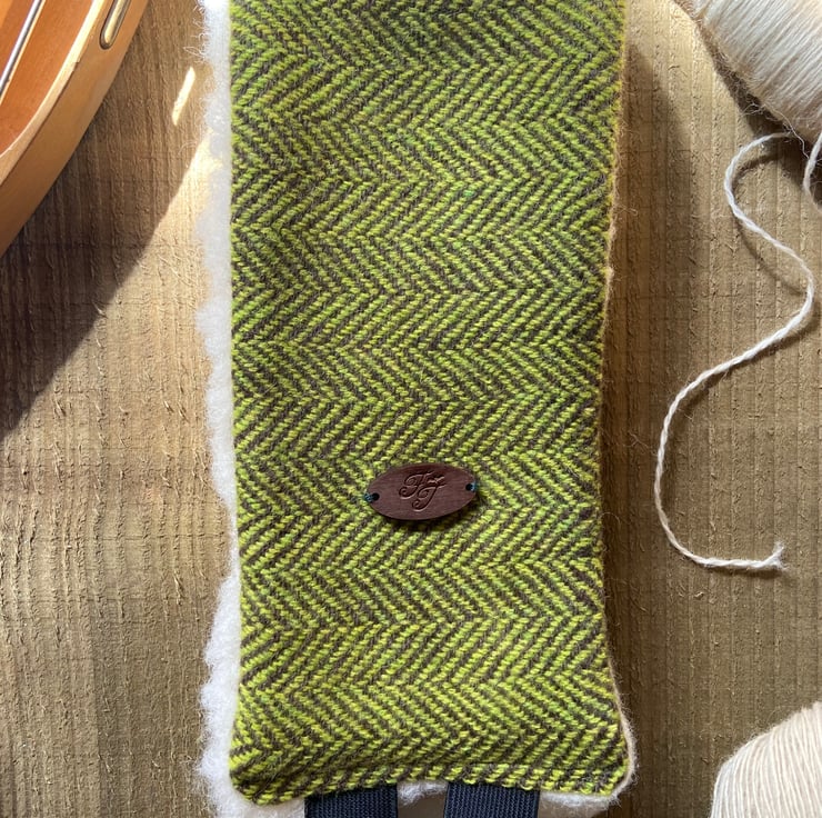 This Green & Brown Herringbone winter headband has been handcrafted using our hand dyed and woven British wool fabrics, lined with a gorgeous natural lambswool fleece fabric, with a double elasticated back to give a comfortable fit for a range of head sizes. Finished with an engraved wooden tag featuring our logo.