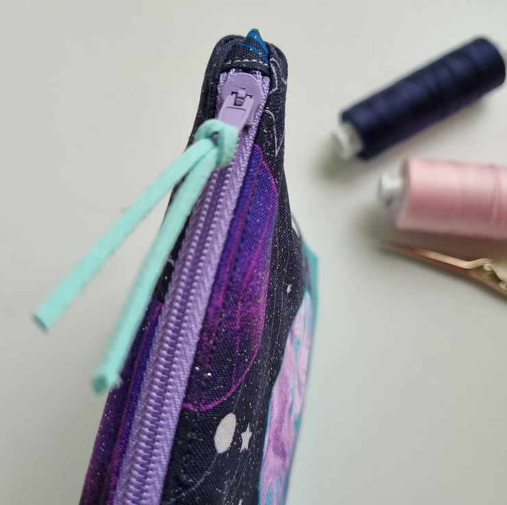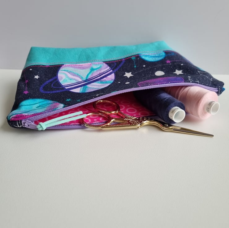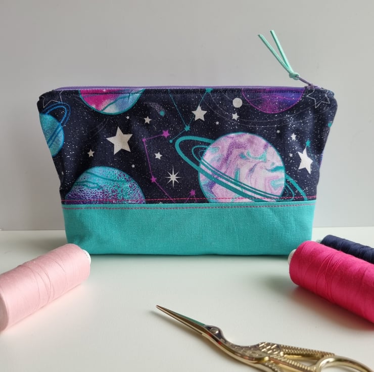 Beautiful handmade, planets inspired large pencil case or zipped pouch complete with glittery stars!