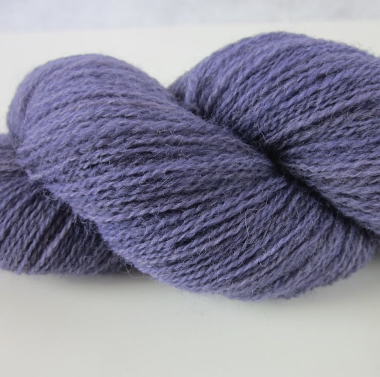 50g soft wool yarn kettle dyed with logwood to a rich purple blue