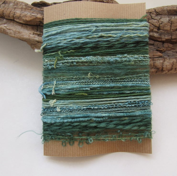 20 lengths of yarns, all approx 1m (40") long, hand dyed to a bright spring green with carefully blended natural dyestuffs.