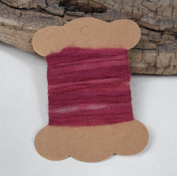 Hand dyed pure wool couching thread, dyed with natural brazilwood dye to give a rich dark pink