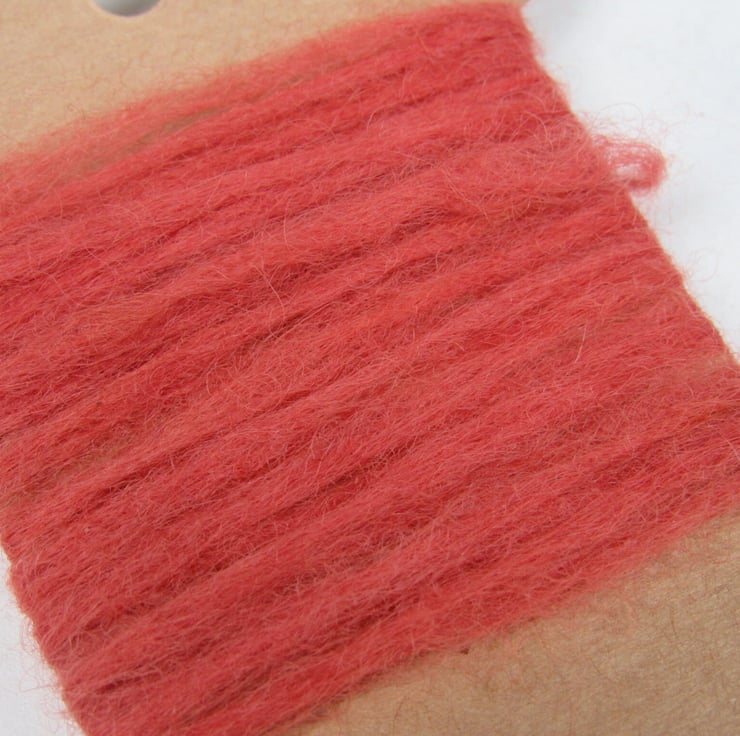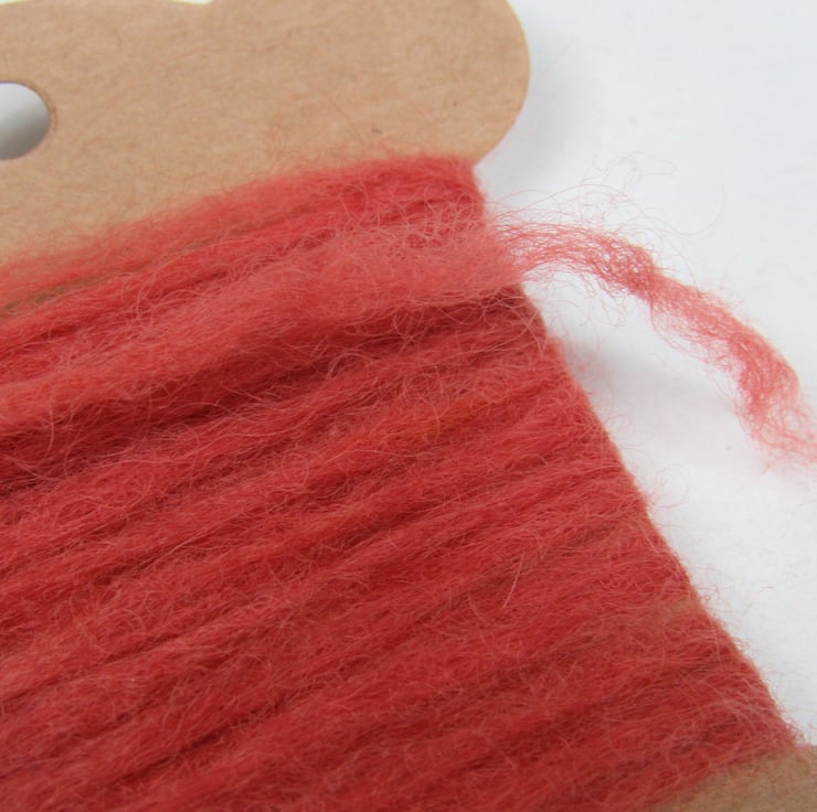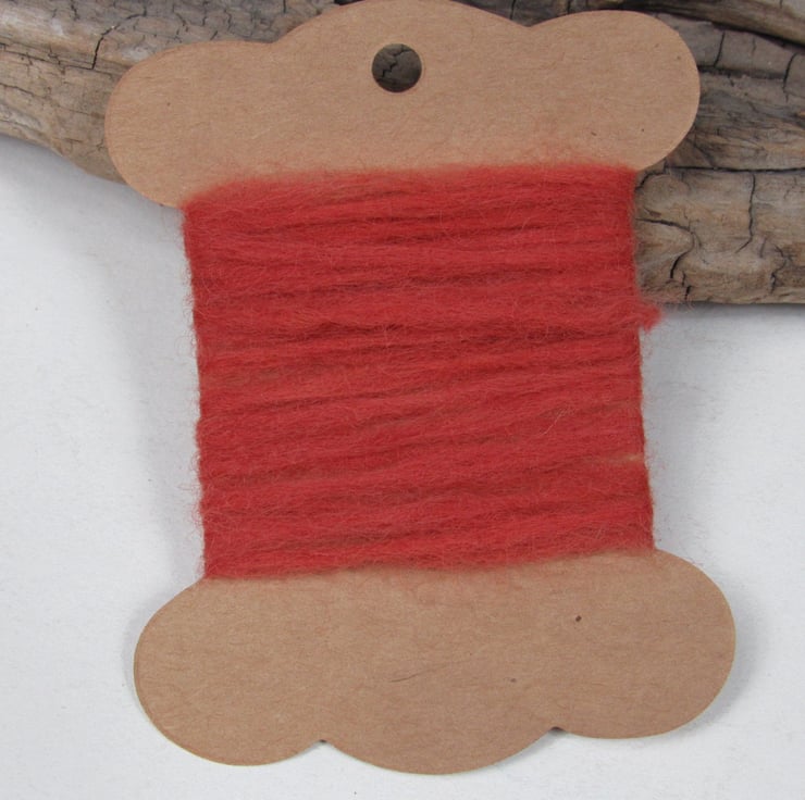 Hand dyed pure wool couching thread, dyed with natural madder dye to give a rich rusty red
