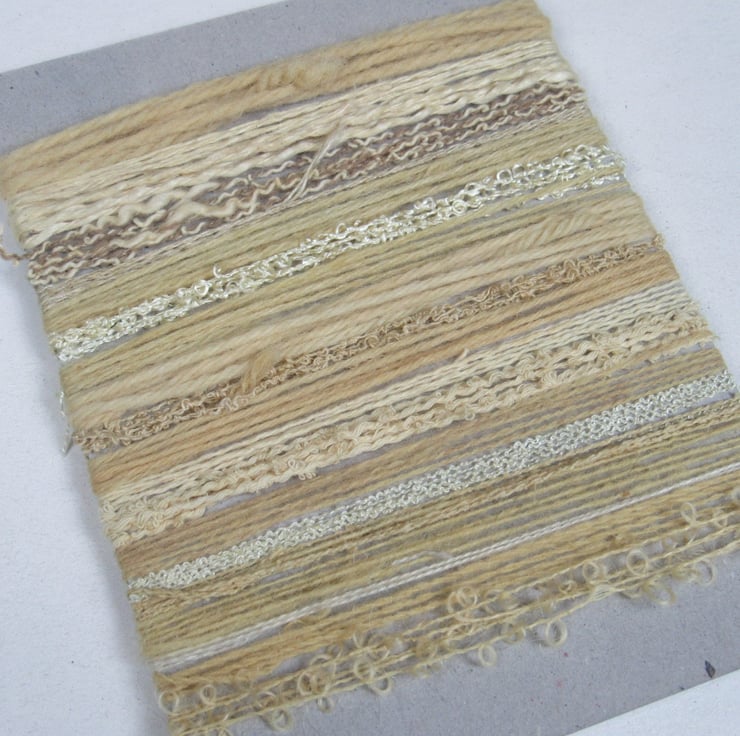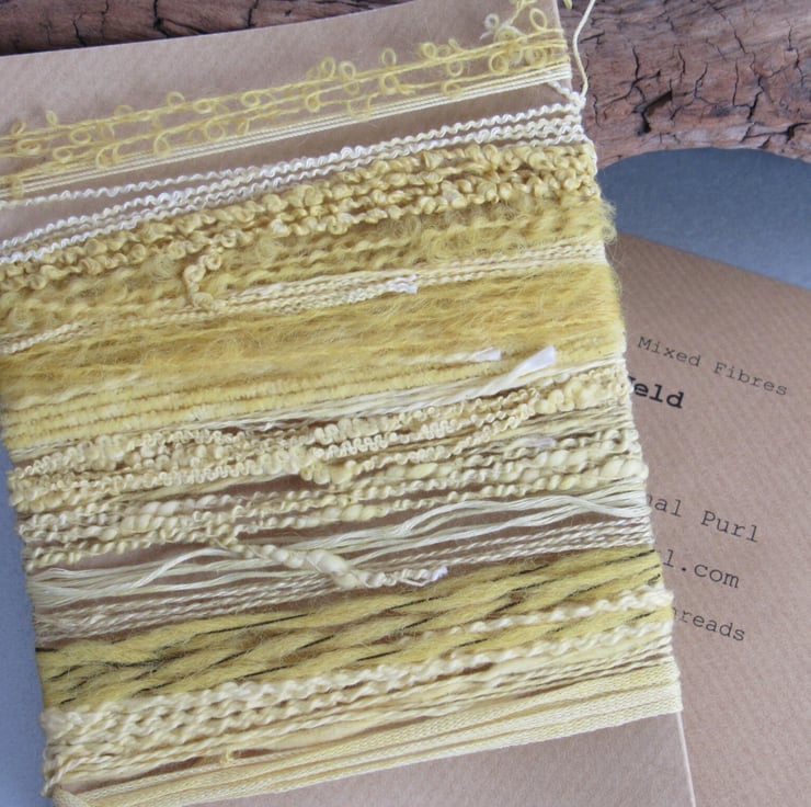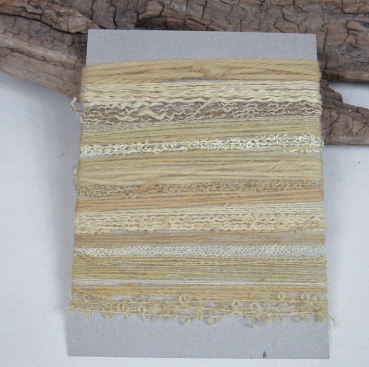 20 lengths of yarn and lace, all approx 1m (40") long, hand dyed with weld flowers from my smallholding.