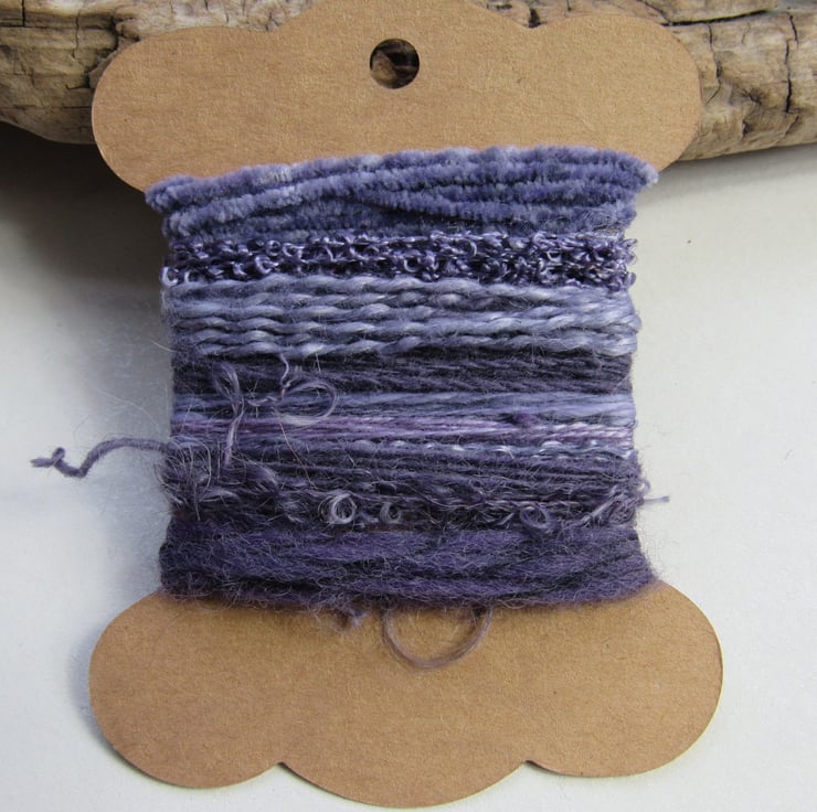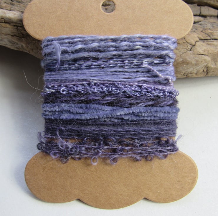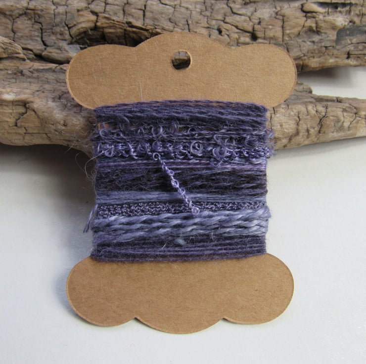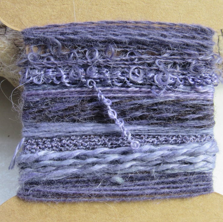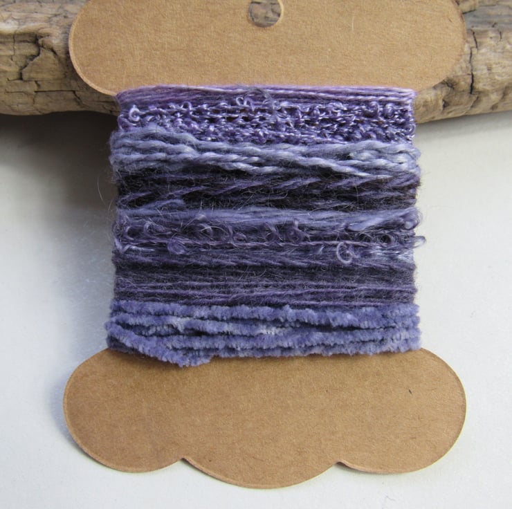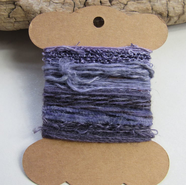 10 lengths of yarns, all approx 1m (40") long, hand dyed to a dark lilac with carefully prepared natural alkanet dyes