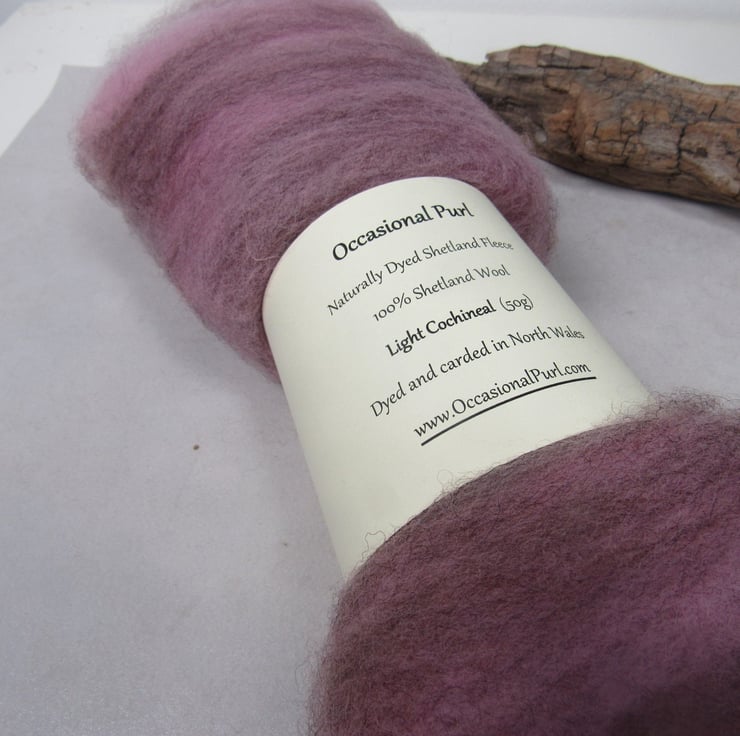 100% British Shetland wool, carefully dyed with cochineal to give a range of light and delicate shades of pink.