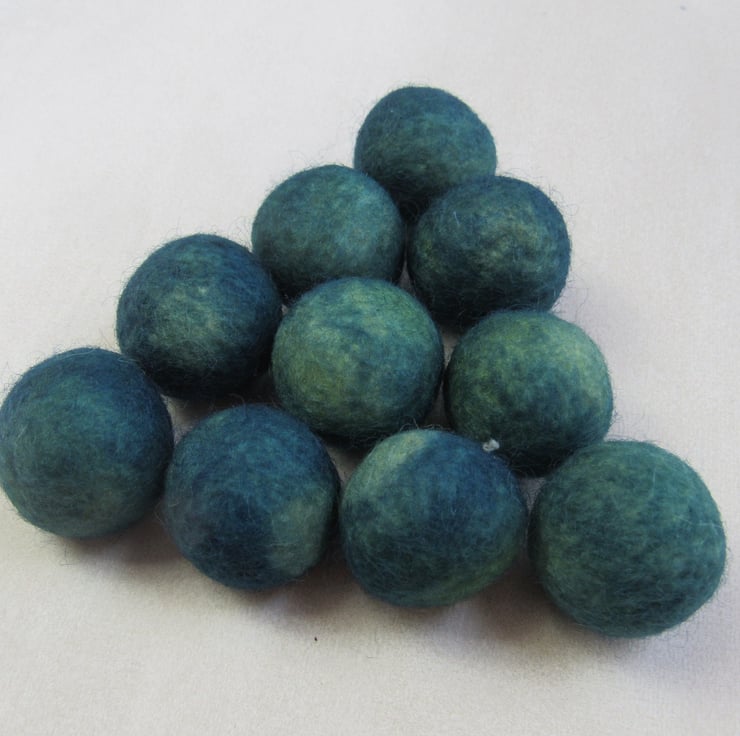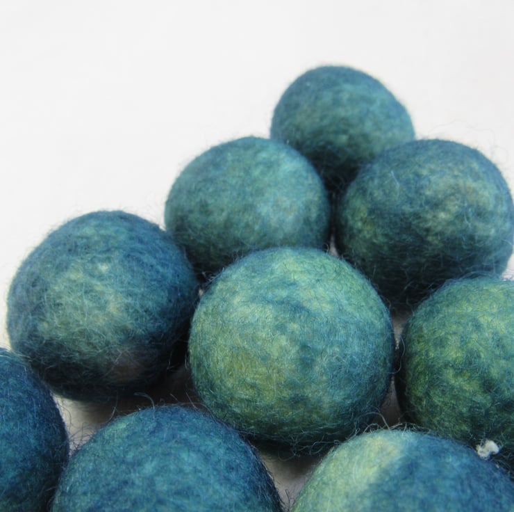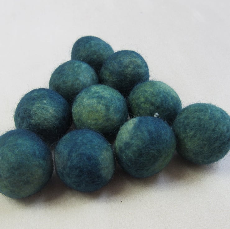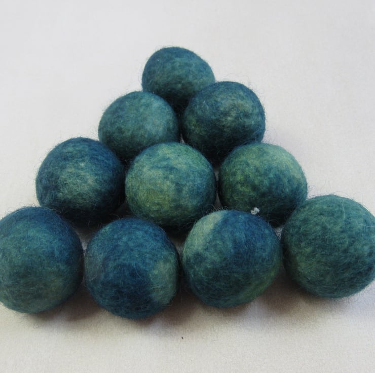 10 2cm felt balls, kettle dyed with weld and indigo