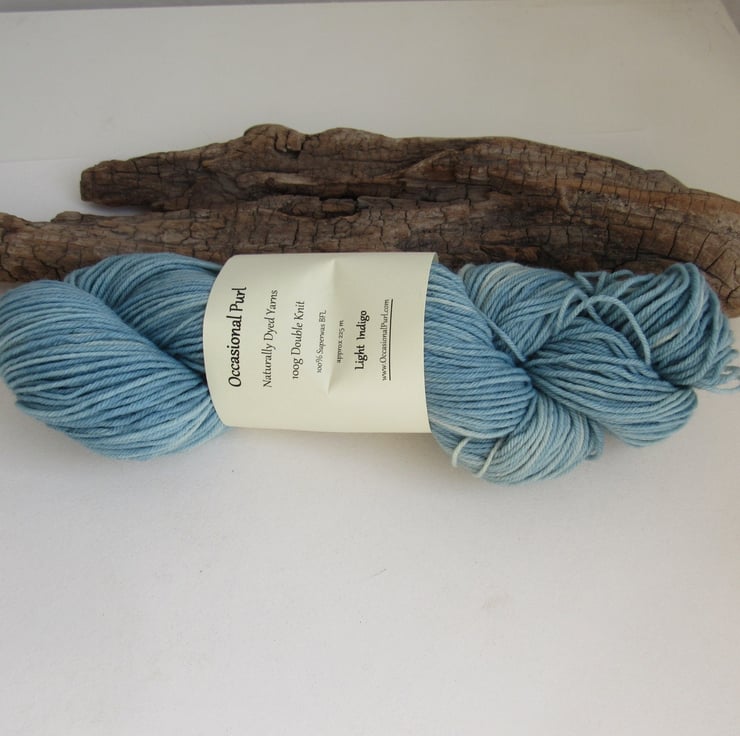 100g soft BFL Superwash yarn kettle dyed with indigo to a soft mid-blue
