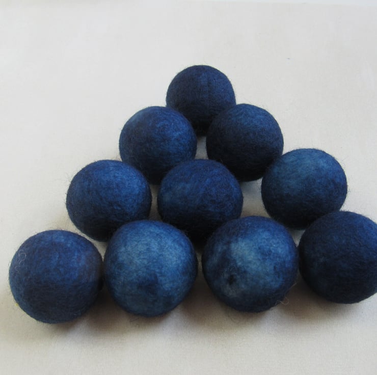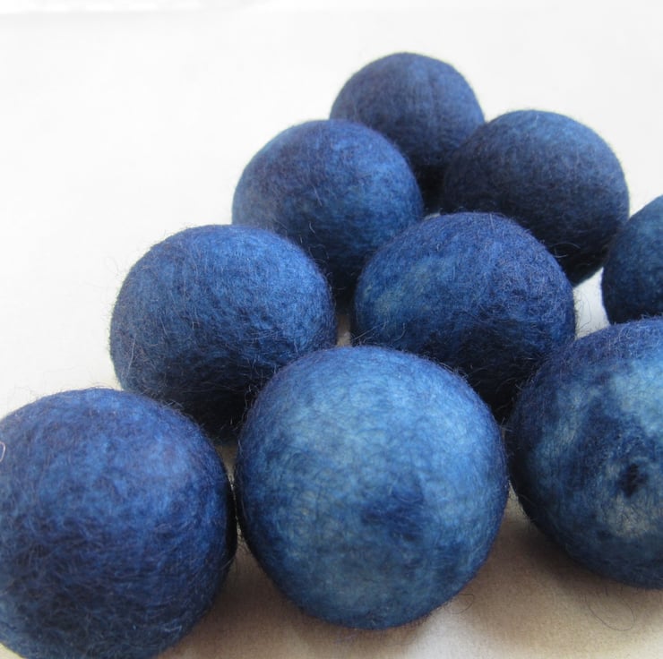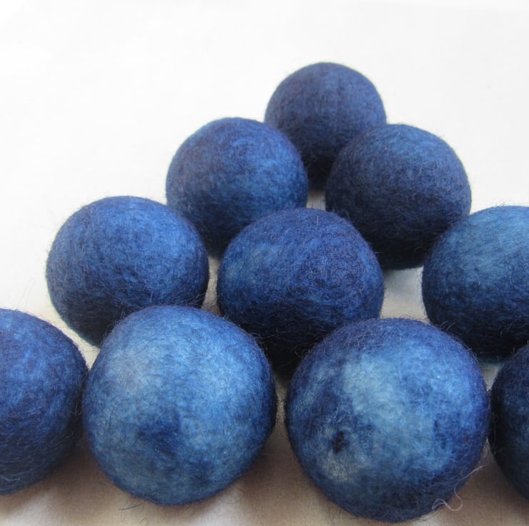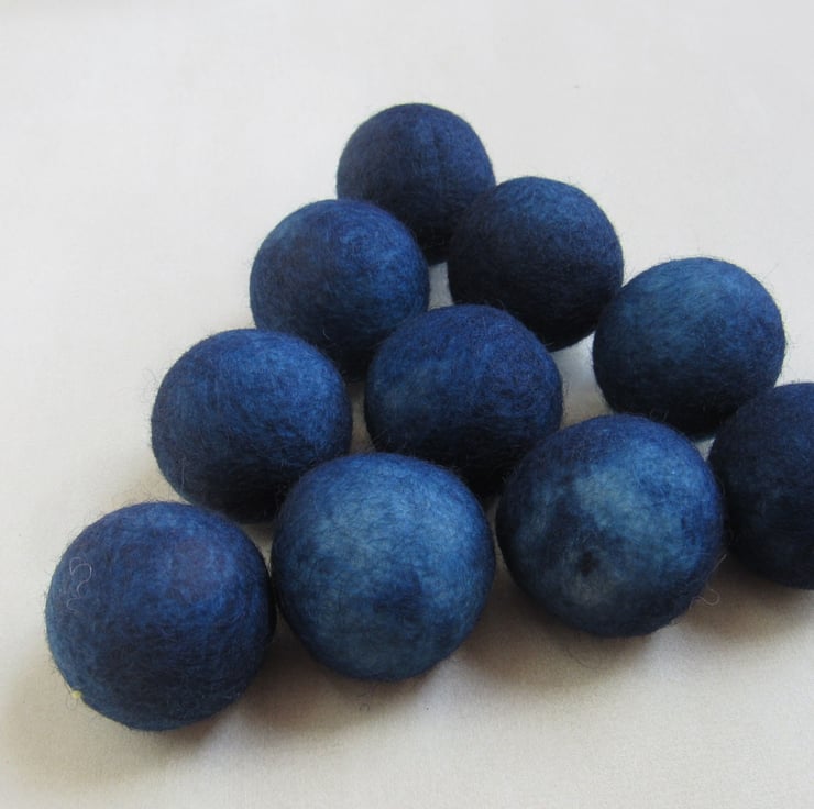 10 large 3cm felt balls, kettle dyed with natural indigo