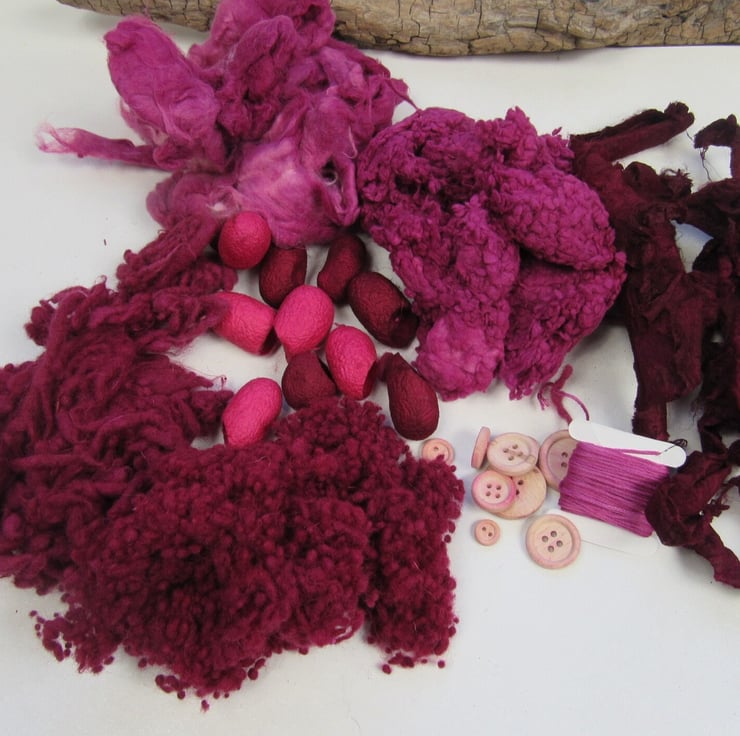 A collection of mixed natural fibres and textures, carefully dyed with natural dyes.