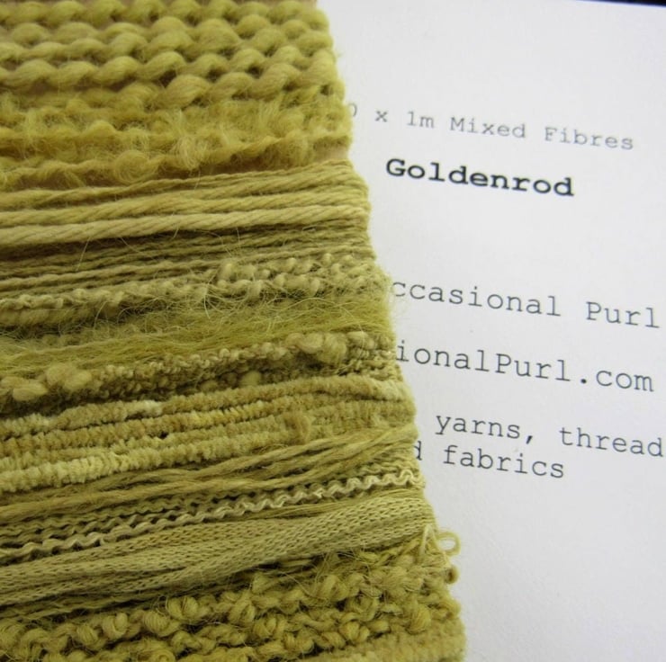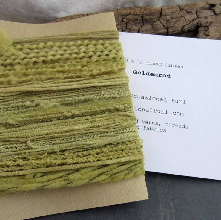 20 lengths of yarn and lace, all approx 1m (40") long, hand dyed with goldenrod flowers from my smallholding.