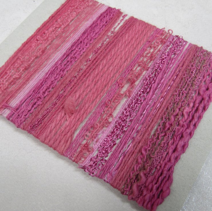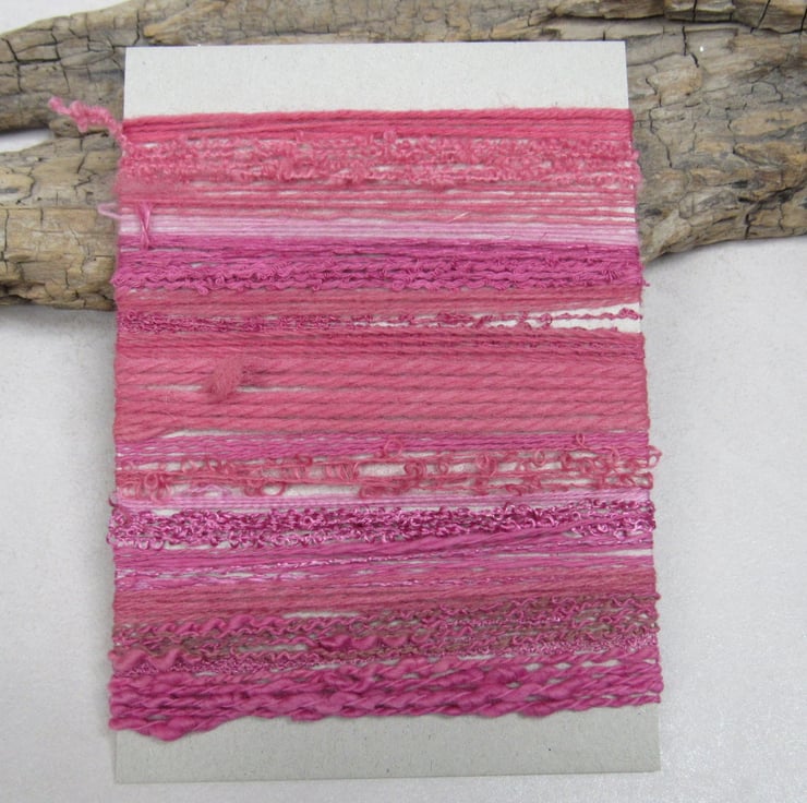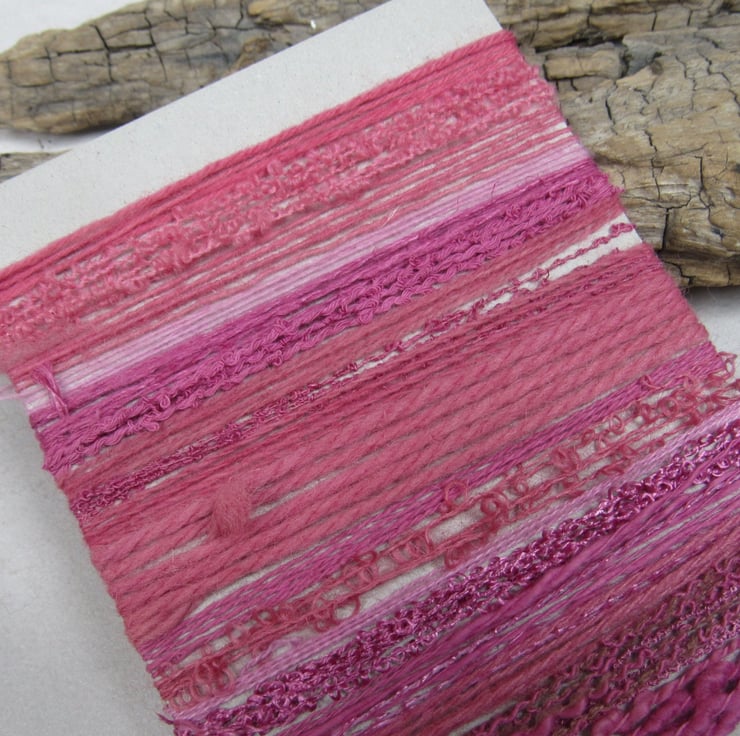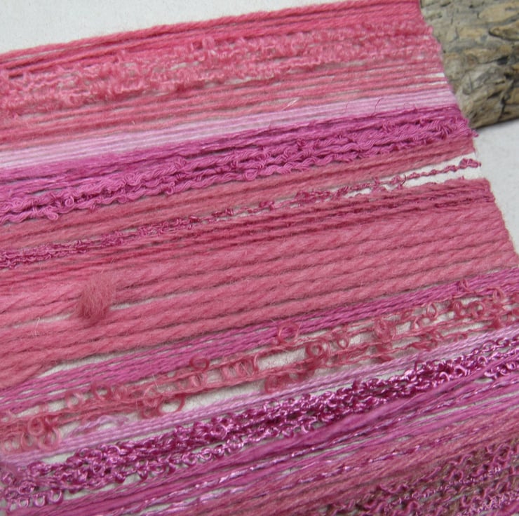 20 lengths of yarns, all approx 1m (40") long, hand dyed to rich pinks with natural dyes.