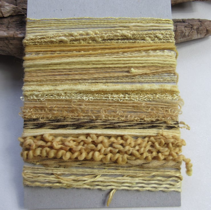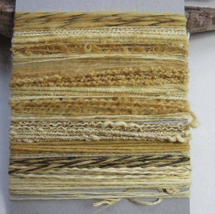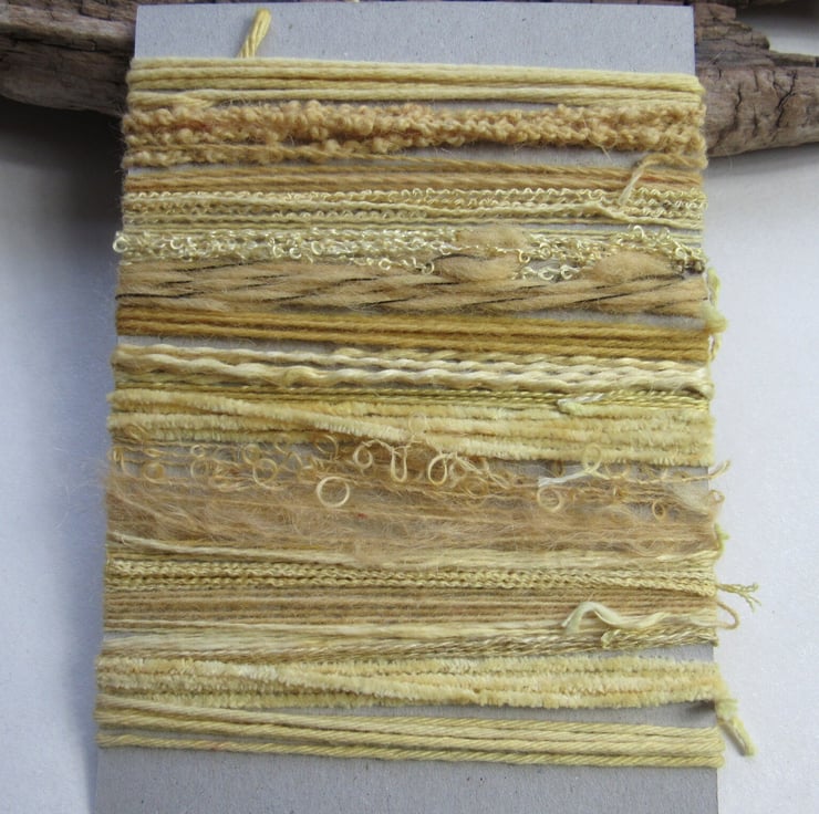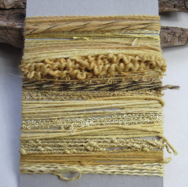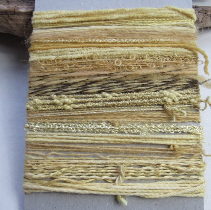 20 lengths of yarn and lace, all approx 1m (40") long, hand dyed with pomegranate peels