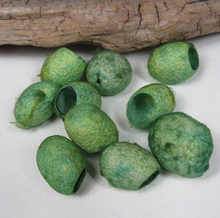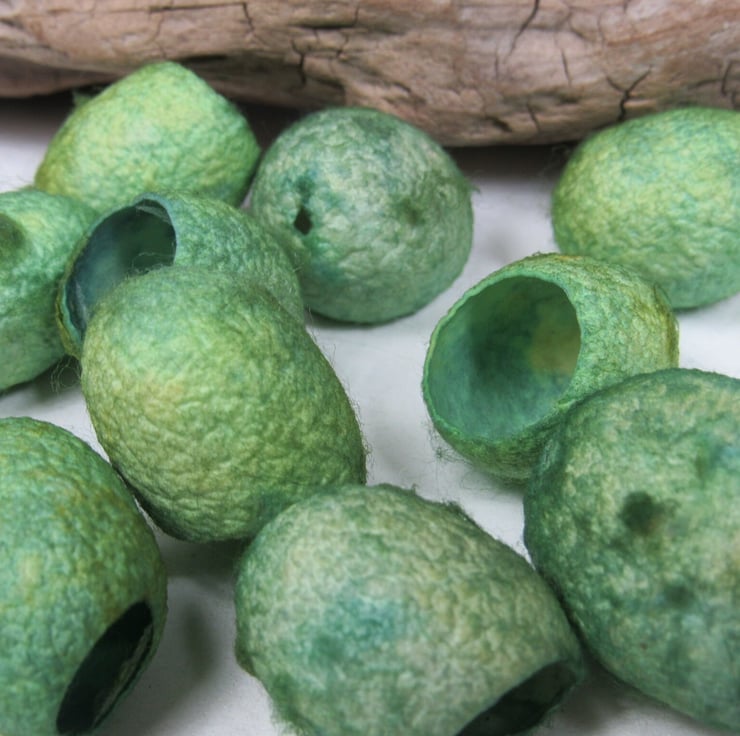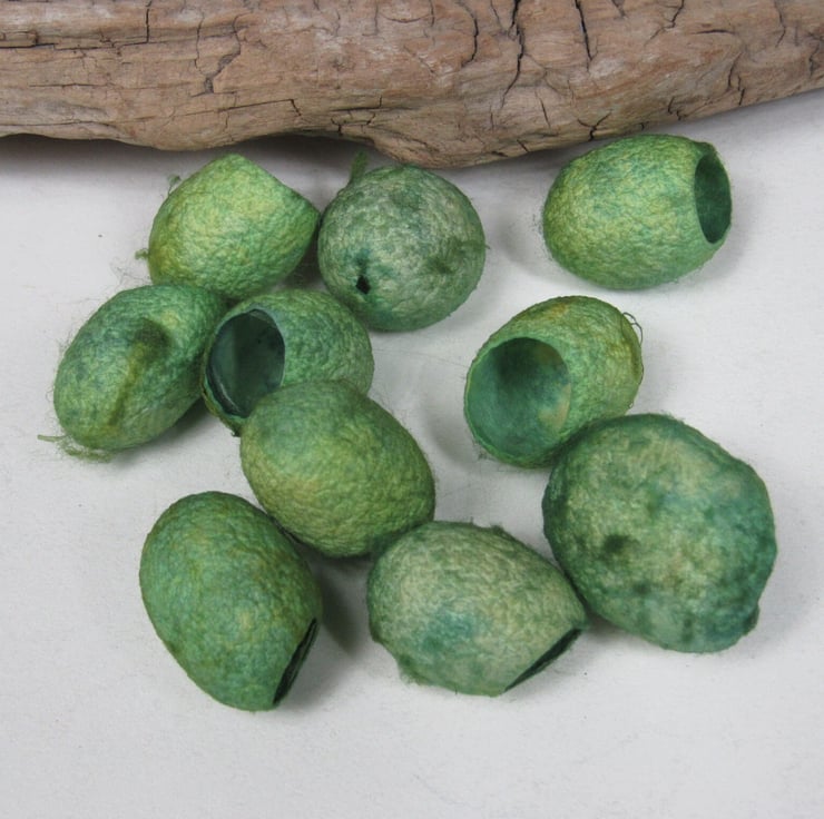 10 Silk Cocoons hand dyed with natural dyes to a vivid grassy green