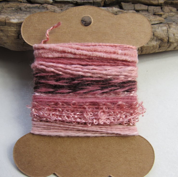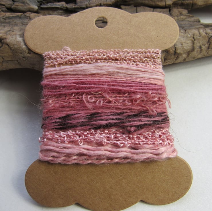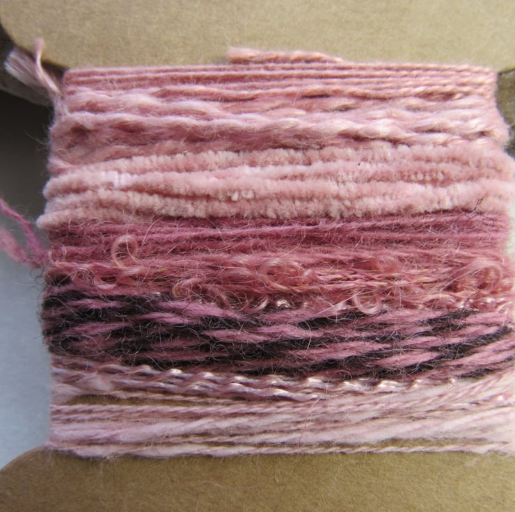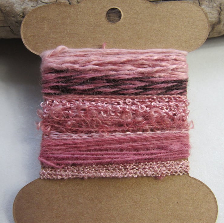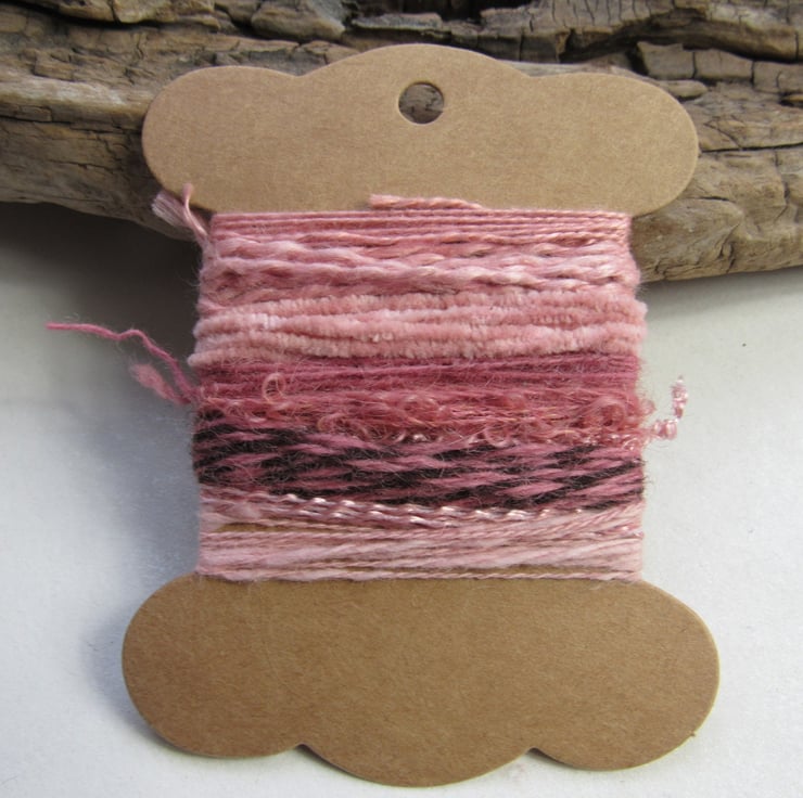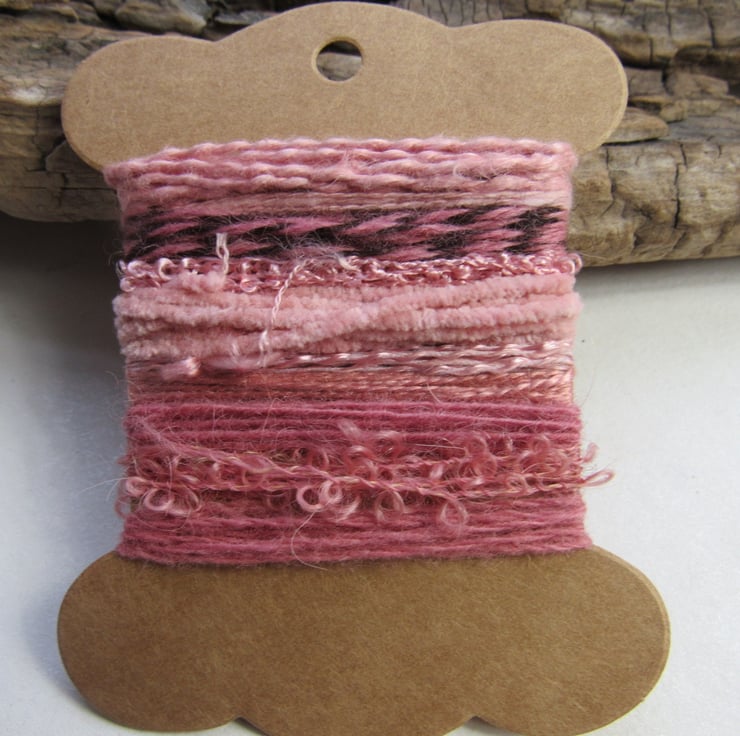 10 lengths of yarns, all approx 1m (40") long, hand dyed to a rich pink with natural dyes