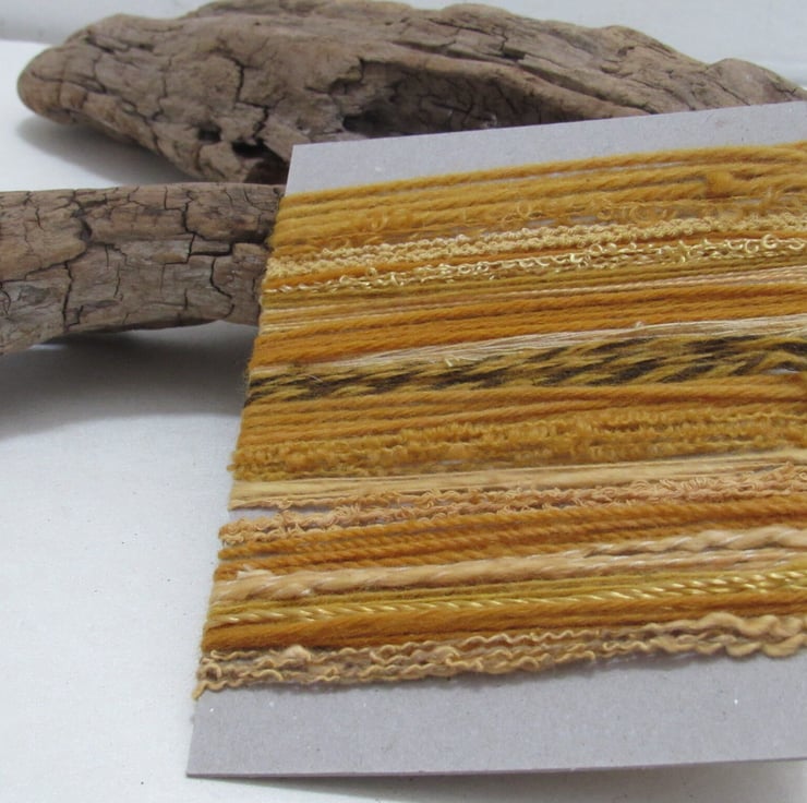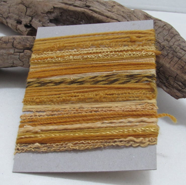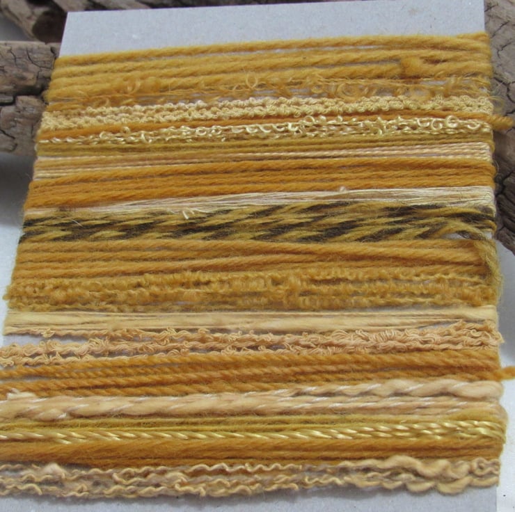20 lengths of yarns, all approx 1m (40") long, hand dyed to a rich golden yellow with homegrown onion skins