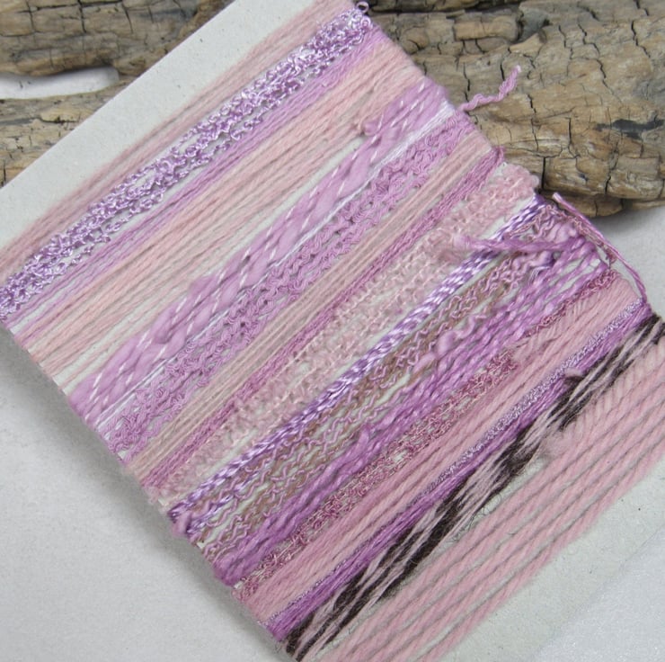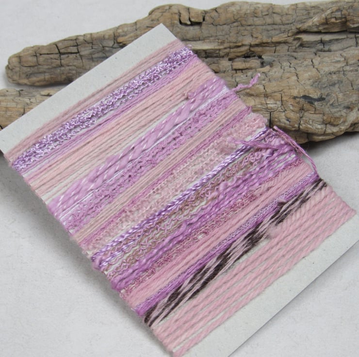 20 lengths of yarns, all approx 1m (40") long, hand dyed to rose pinks with natural dyes.
