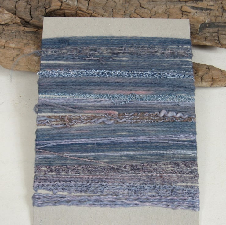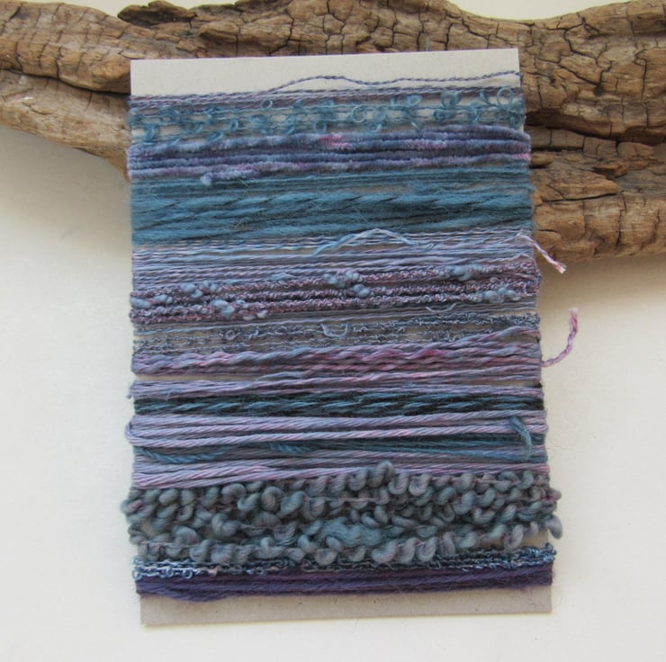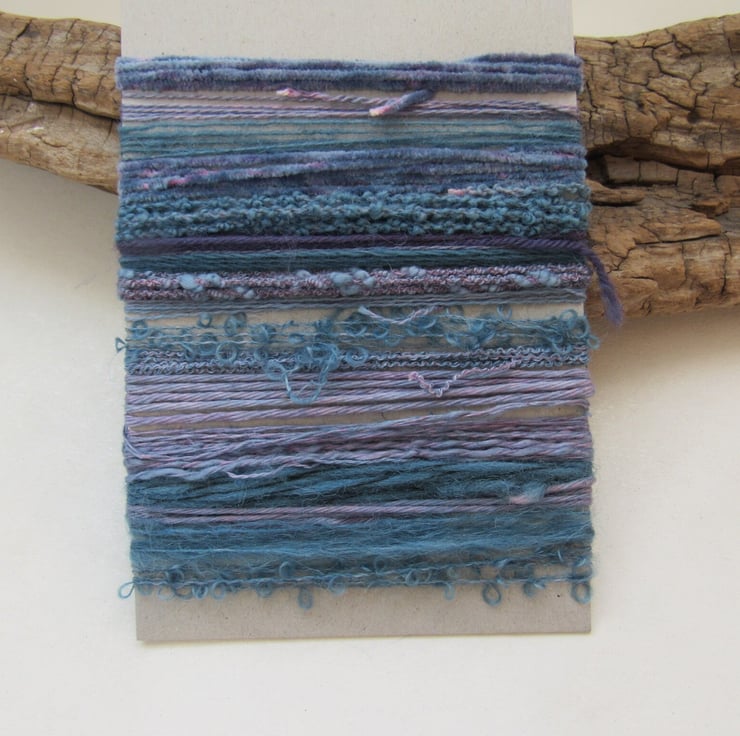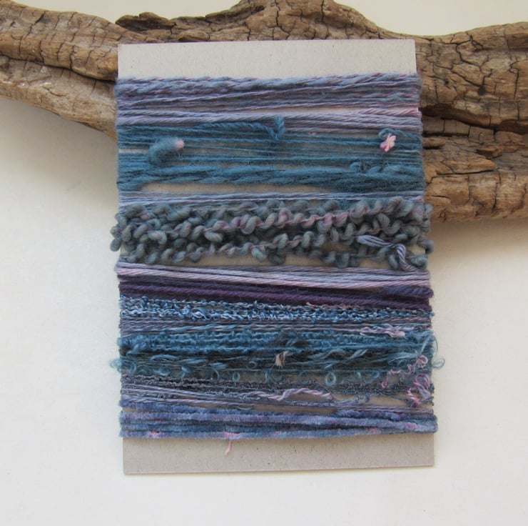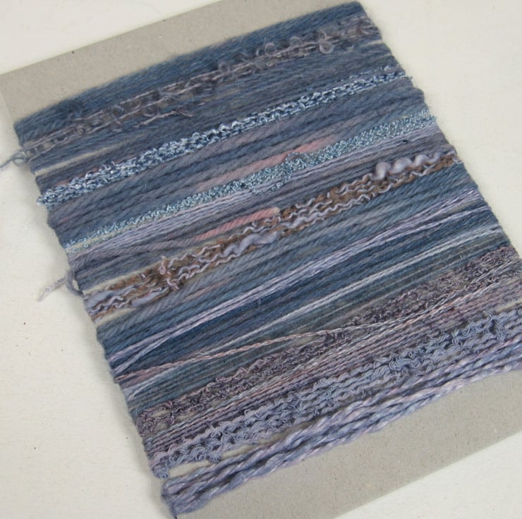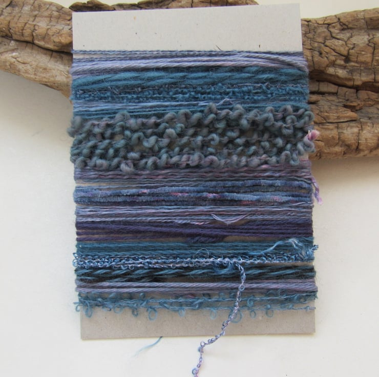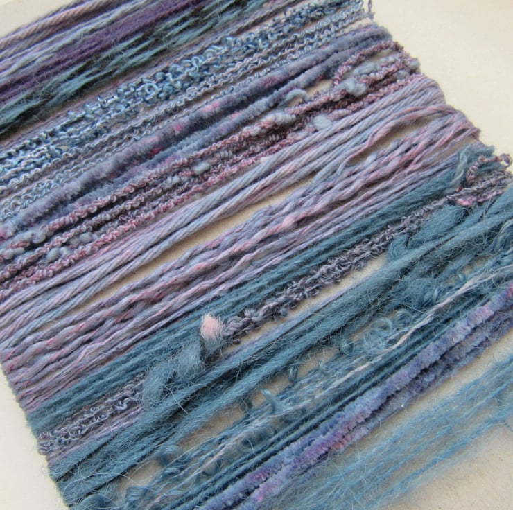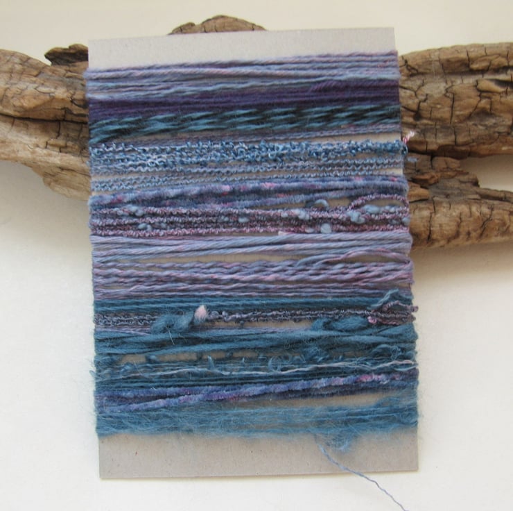 20 lengths of yarns, all approx 1m (40") long, hand dyed to dark slate purples with carefully blended natural dyes.