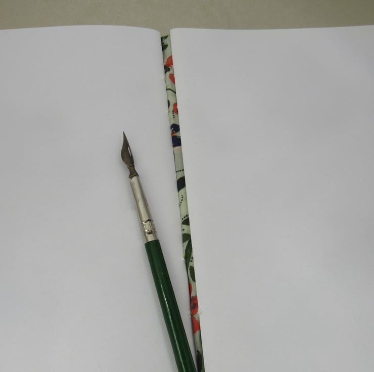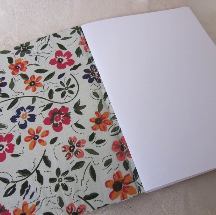 The inside covers are made of a pretty retro floral cotton and front and back covers are stiffened with recycled board.