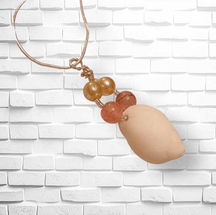 Pretty Seashell Pendant - Handmade decorated with Upcycled Faux Pearls - Glass Beads, Seed Beads.
