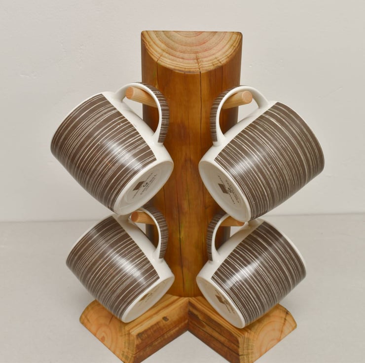 A super sturdy take on the classic mug tree, with biscuit jointed feet and dowelled mug tower.