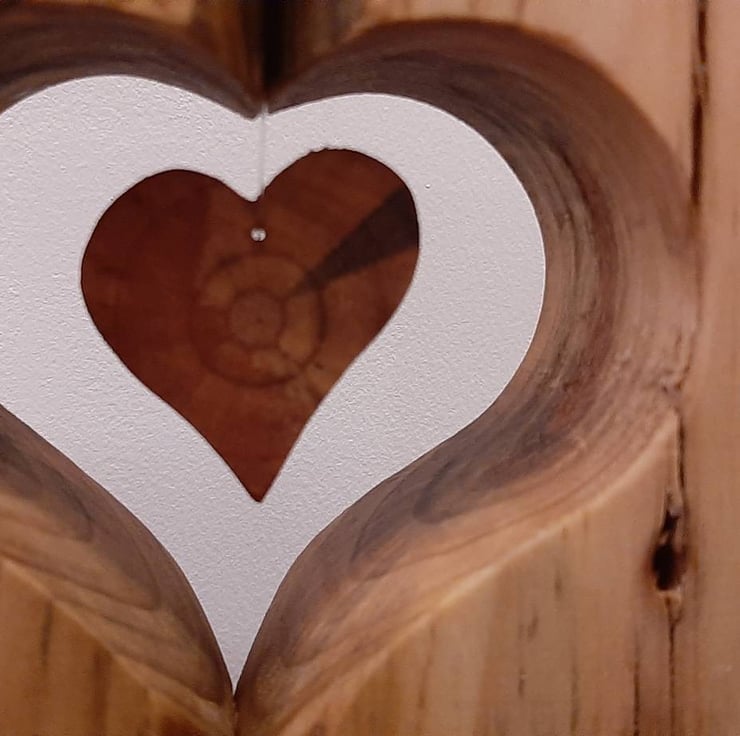 The 'floating' heart is made to include the heartwood of the tree, this is the first wood a tree makes as it starts it's life and can be seen as the darker circle near the centre of the heart!