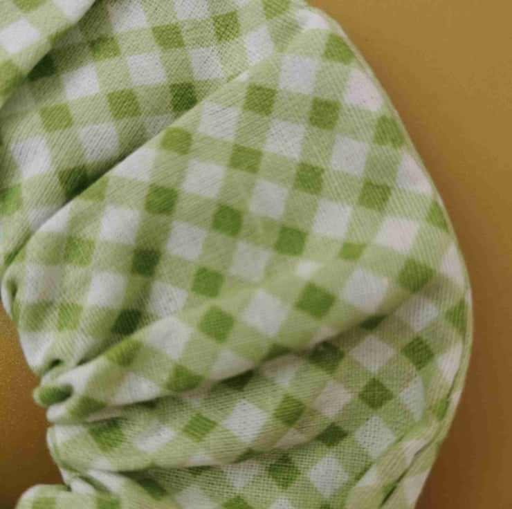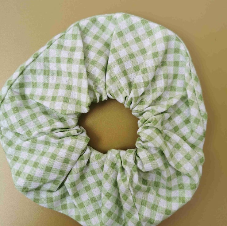 Crisp gingham print. A 100% handsewn scrunchie.
