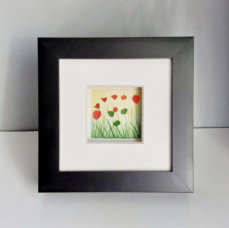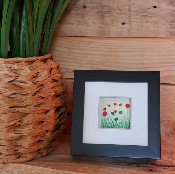 Bring a cheerful touch to your space with this delightful miniature watercolor painting of red poppies swaying in a flower field, enhanced with sea glass accents. It’s an ideal gift for a friend, loved one, or as a thoughtful gesture of gratitude. Add a unique piece of nature-inspired art to your decor with this charming creation!