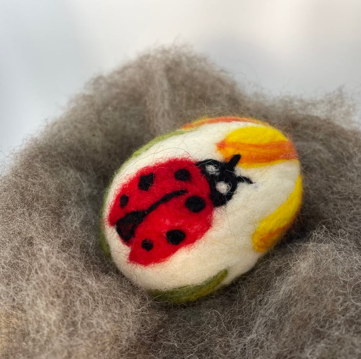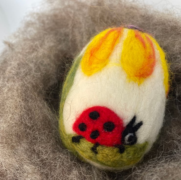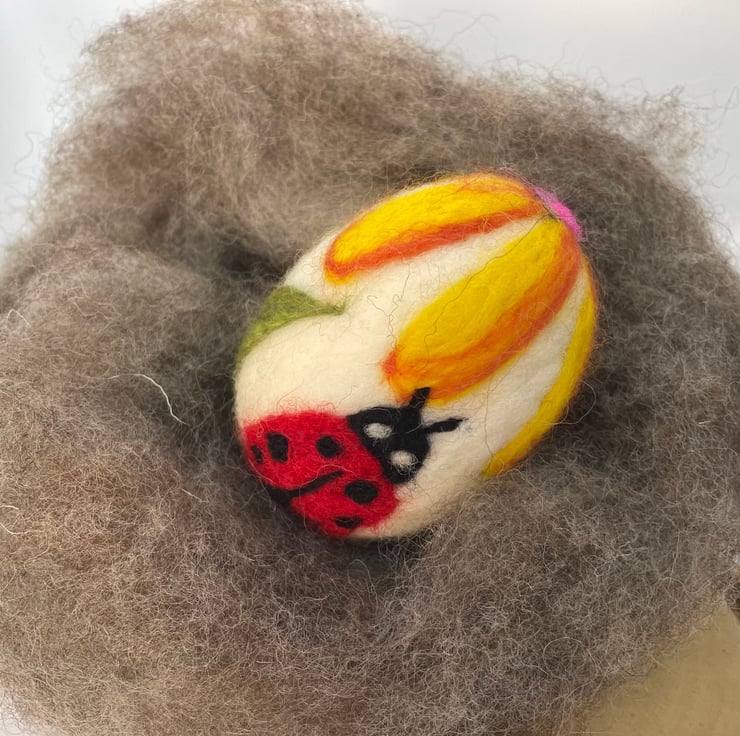 Needle felting is very time consuming. By jabbing barbed needles thousands of times into unspun wool to compact the fibers.