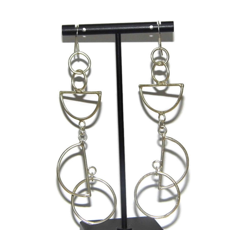 Handmade Sterling Silver Geometric Dangle Earrings