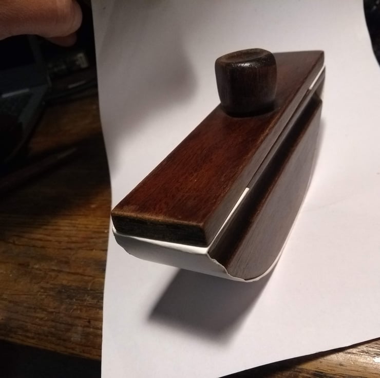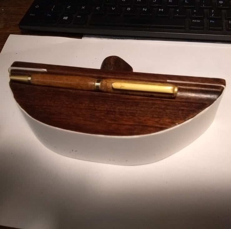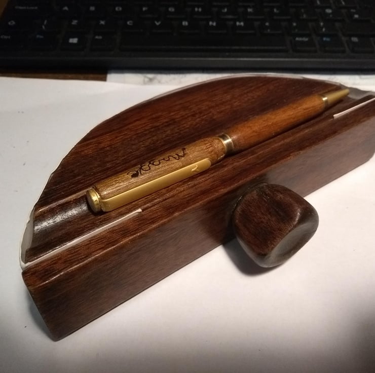 I got a new tool to cut threads in timber, which enabled a blotter to be made from a second hand piece of wood lying about... finished with a coat of lacquer, a nice paper weight with a pen rest and a built in blotter if needed....