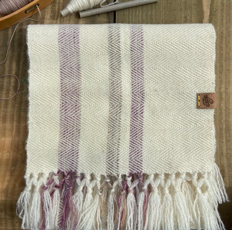 Featuring a simple stripe design made up of un-dyed and subtle painted British lambs wool in the warp and un-dyed British lambs wool in the weft. Hand woven in a herringbone structure on our medium loom - a 4 shaft Harris Counter March loom named Marilyn.