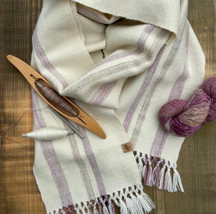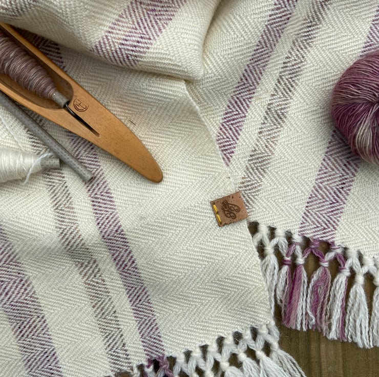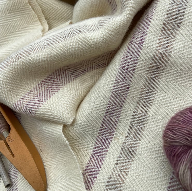 Featuring a simple stripe design made up of un-dyed and subtle painted British lambs wool in the warp and un-dyed British lambs wool in the weft. Hand woven in a herringbone structure on our medium loom - a 4 shaft Harris Counter March loom named Marilyn.