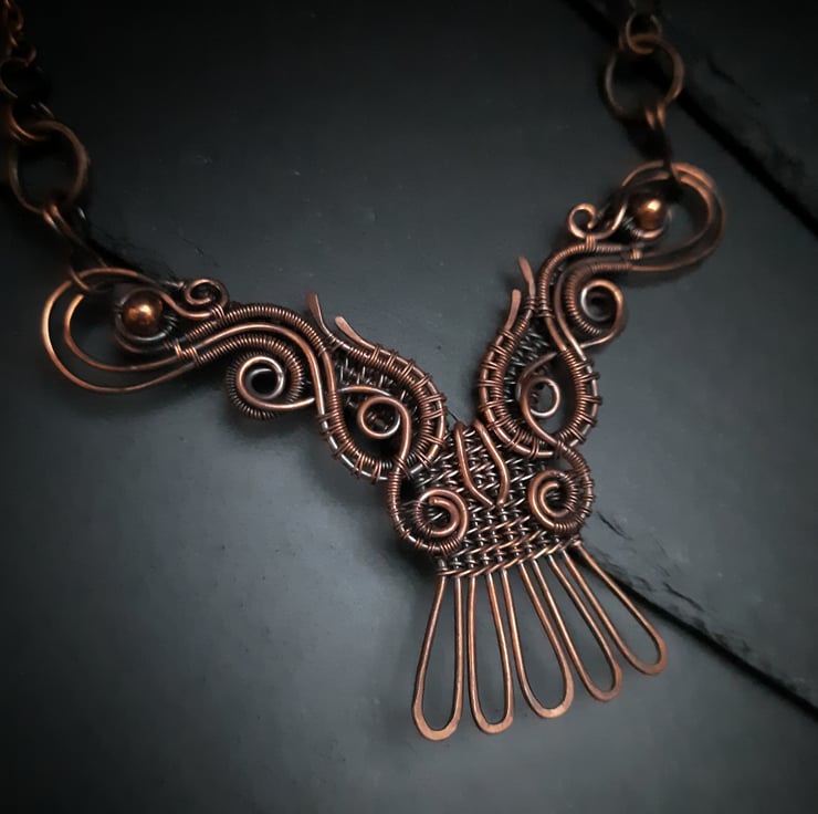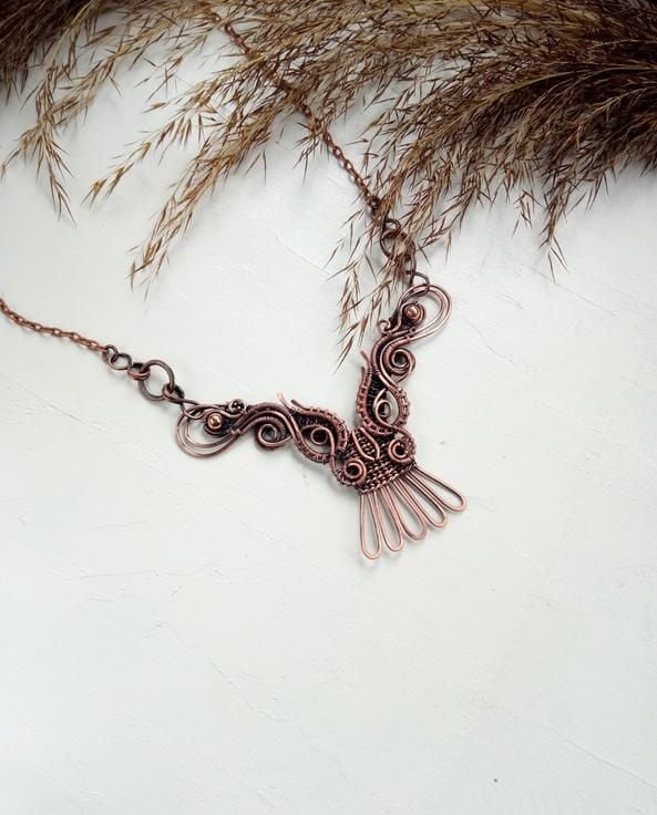 The original necklace made of copper wire Owl. When it darkens over time, it can be easily cleaned with silver cleaning wipes.