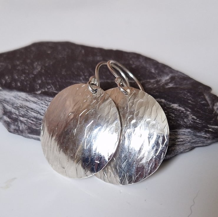 These earrings really show off the silver to great advantage, the hammering creating different effects that really catch the light.