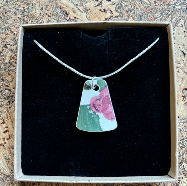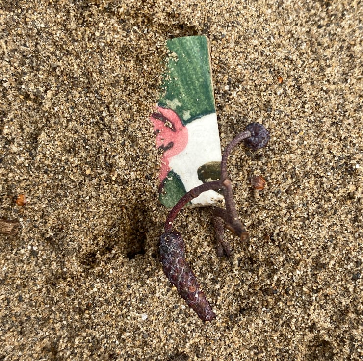 Hand crafted Jewellery and framed artworks using pre loved and discarded ceramics. Ceramic material will show signs of wear and damage. Entire process is a creative experience from discovery to final picture, nothing planned or preconceived. All materials personally collected from river banks, charity shops, roadside, woods, recycle centres, beaches, wherever dropped, dumped or donated ceramics are found, cleaned and shaped into new stories. Each piece comes with a short bio of where the ceramic came from, date found and re-created. Some shards collected are used as found, others are cut randomly which shape the final work. Every piece is individual, nothing replicated, however, due to repetitive patterns in ceramics there will be some similarity but only through the ceramic material not in the final piece.