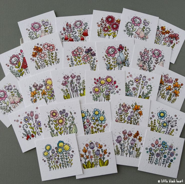hand drawn and coloured with watercolour paints, pens and inks, on a lovely textured watercolour paper. (300gsm)