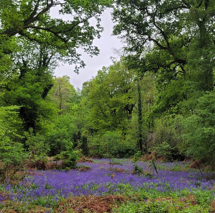 April means bluebell walks for me. This lovely patch is in a clearing in our local wood. The vibrant blue and purple contracts nicely with the new, bright green spring leaves on the trees.